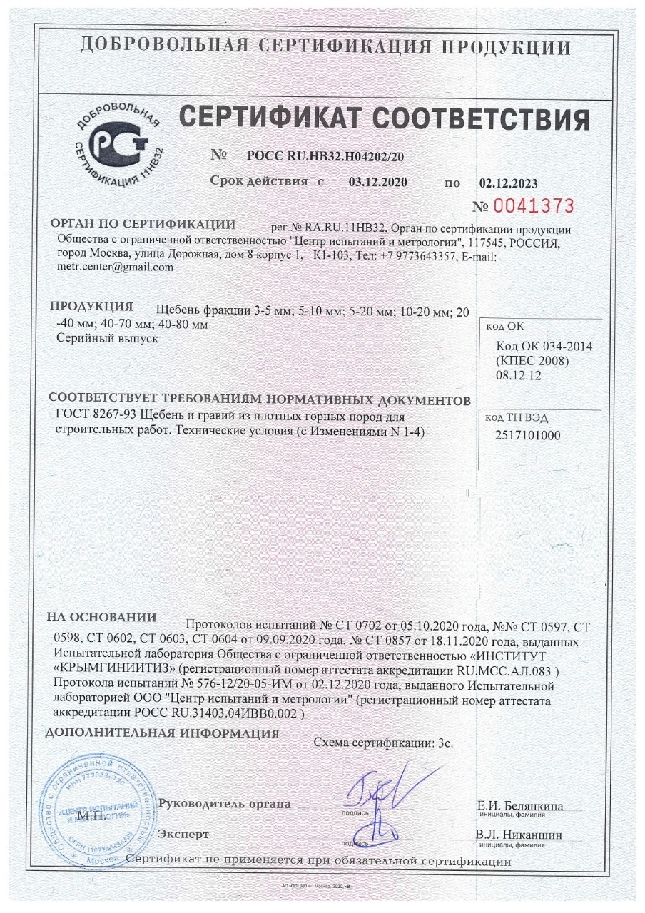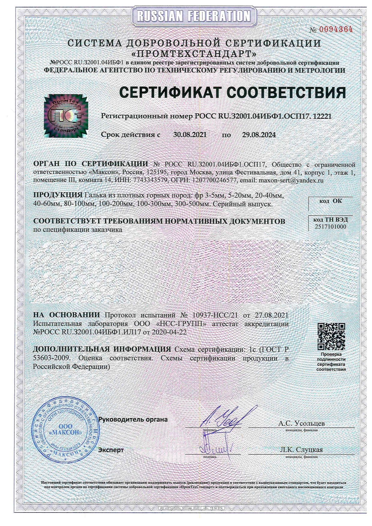 Сертификат соответствия на гальку, бут, булыгу в Кирове